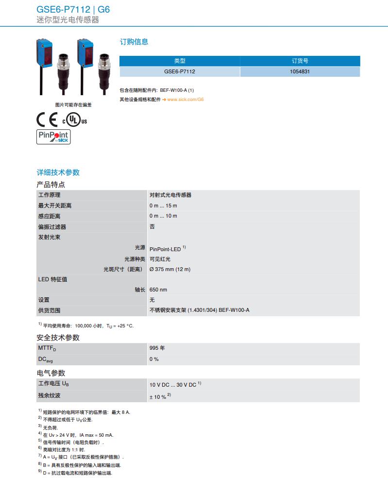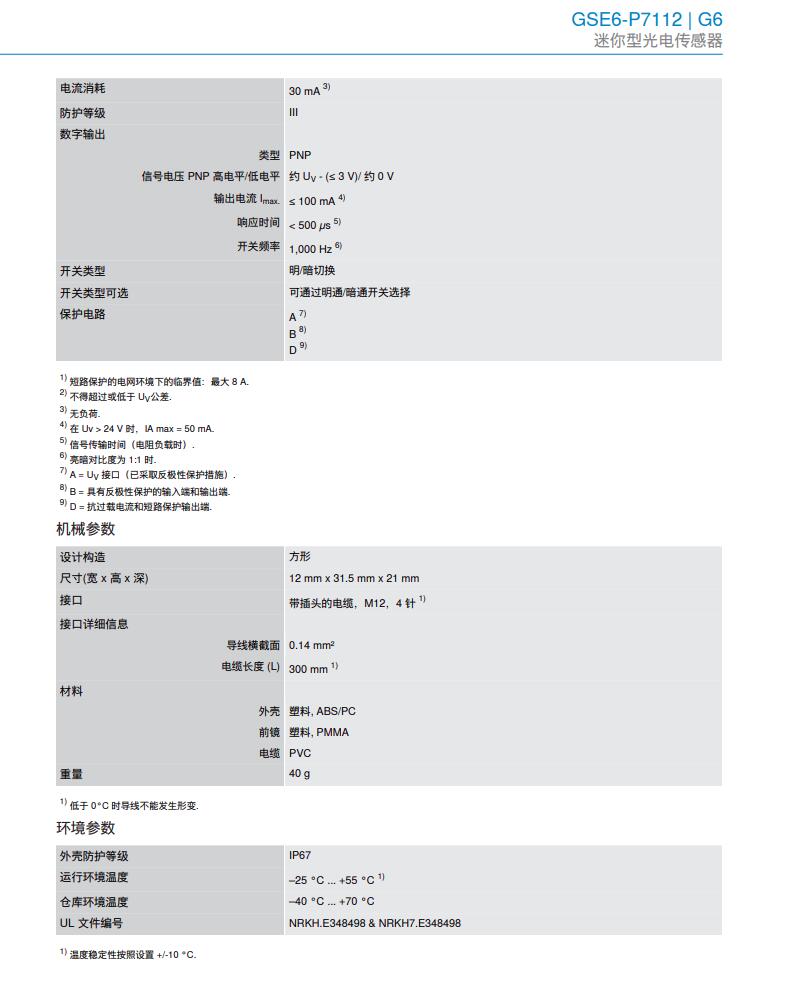 德国SICK西克迷你型光电传感器G6系列 GSE6-P7112产品详情: