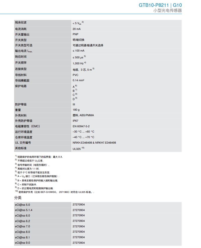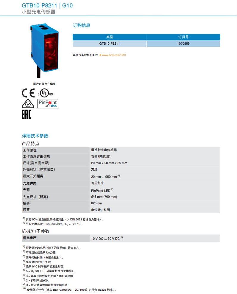 德国SICK西克小型光电传感器G10系列 GTB10-P8211 产品详情: