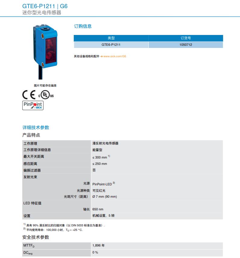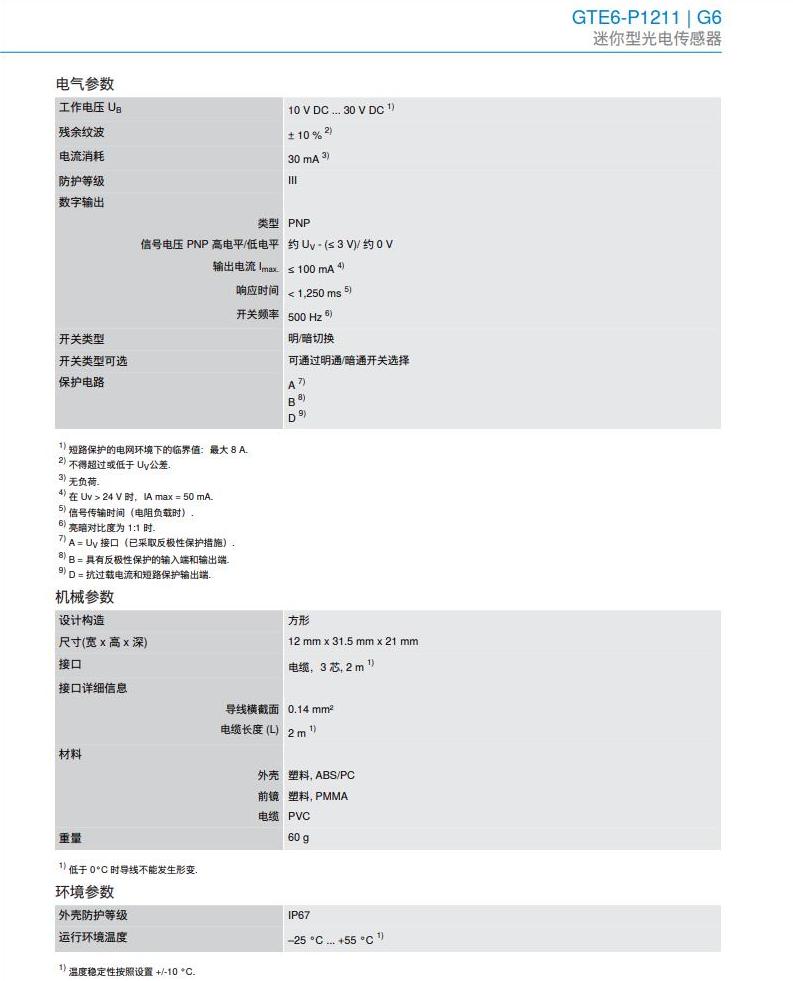 德国SICK西克迷你型光电传感器GTE6-P1211产品详情: