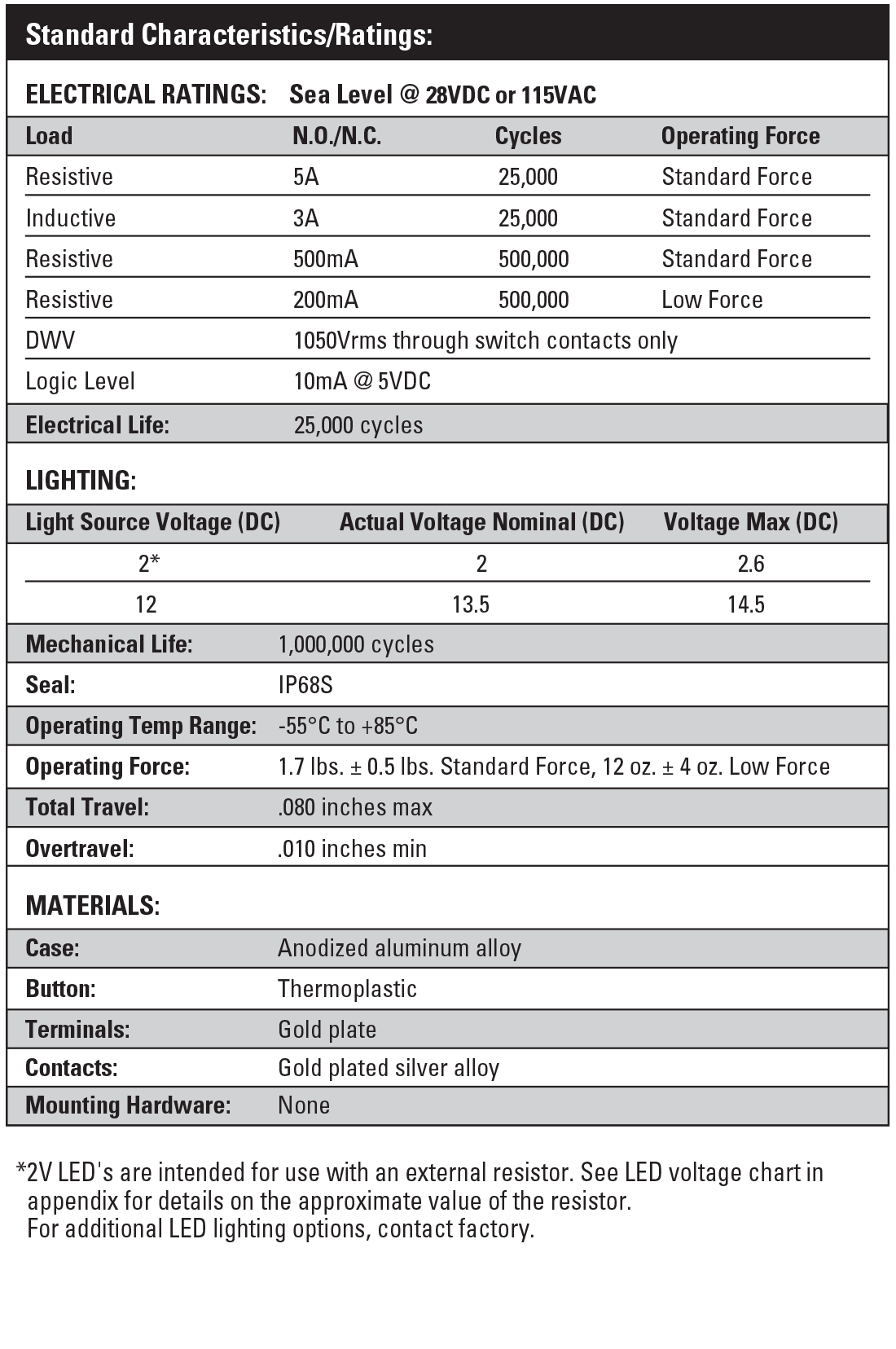 LP7系列提供多种颜色的发光二极管照明,可容纳2 & 12VDC直流电源。按钮版本包括平顶圆顶和凸起圆顶。LP7具有防水至IP68S的密封,是一款高质量的精密开关,设计用于面板、控制手柄、计算机、仪器、重型设备和其他需要美观、高度耐用的按钮开关的苛刻应用。