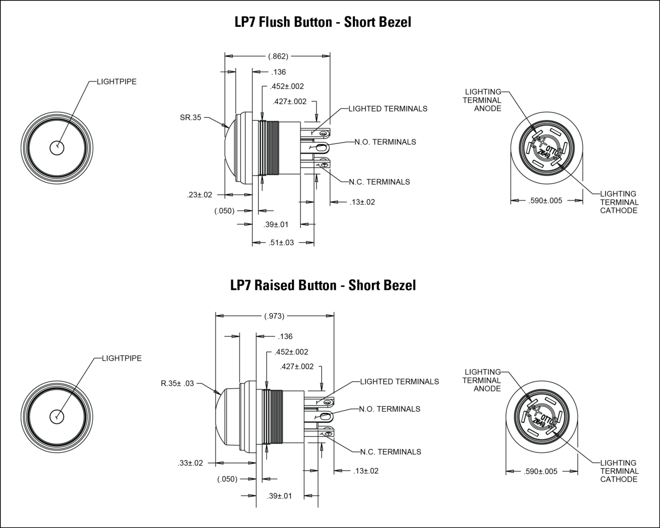 虽然与P9和LP7-D系列按钮开关具有相似的尺寸和特性,但LP7系列发光瞬时动作按钮开关具有紧凑的边框,使面板上方轮廓更低。