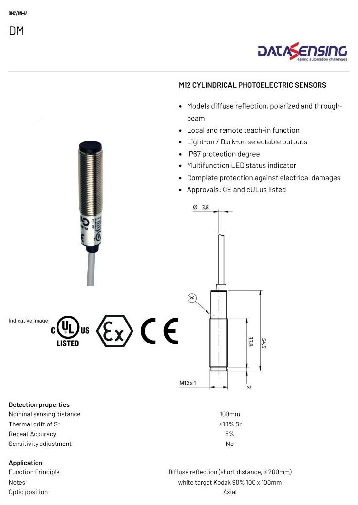 M12圆柱形光电传感器: