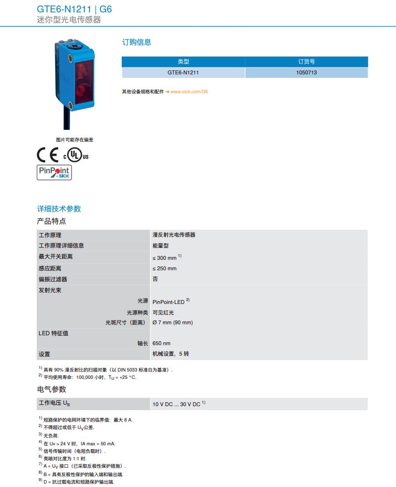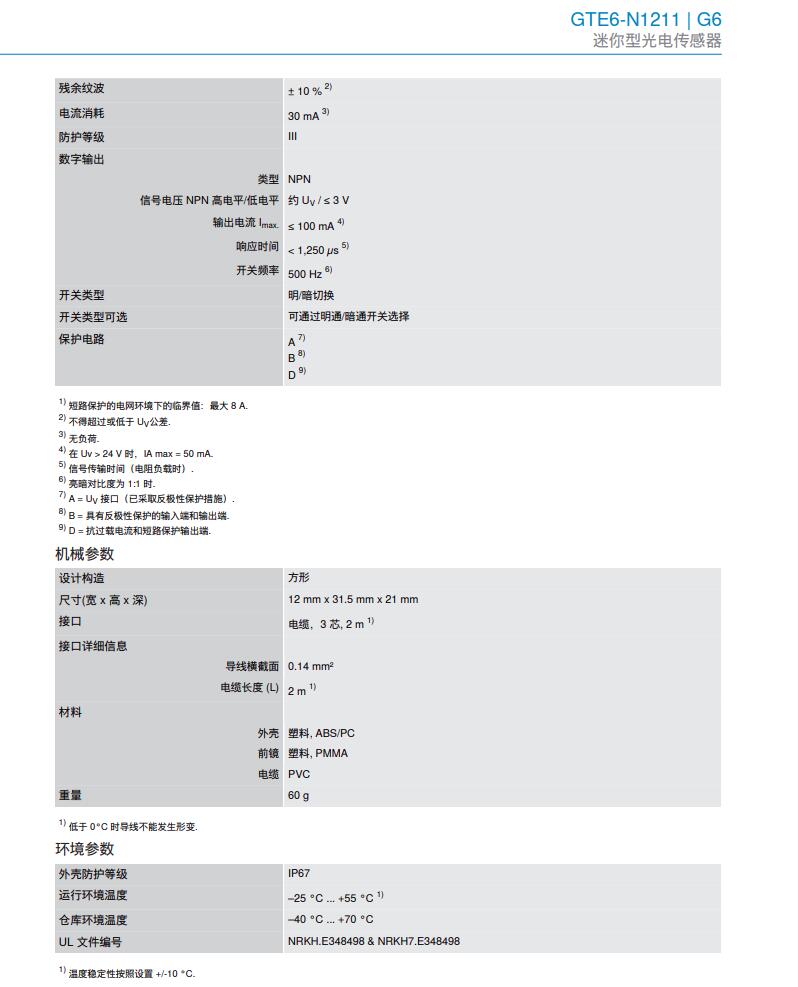 德国SICK西克迷你型光电传感器G6系列GTE6-N1211产品详情: