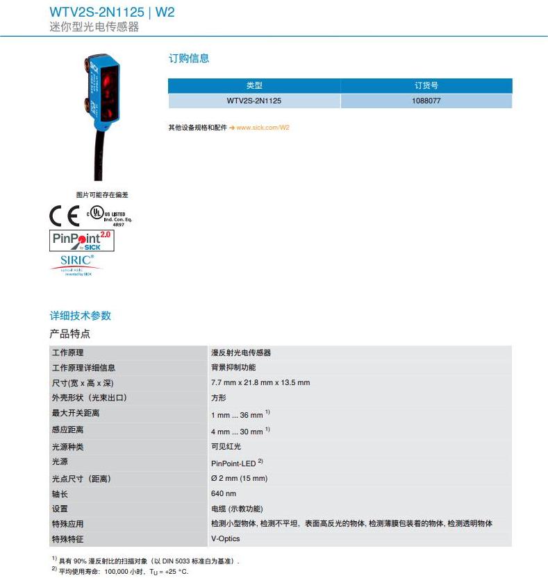 德国SICK西克迷你型光电传感器W2系列WTV2S-2N1125产品详情:
