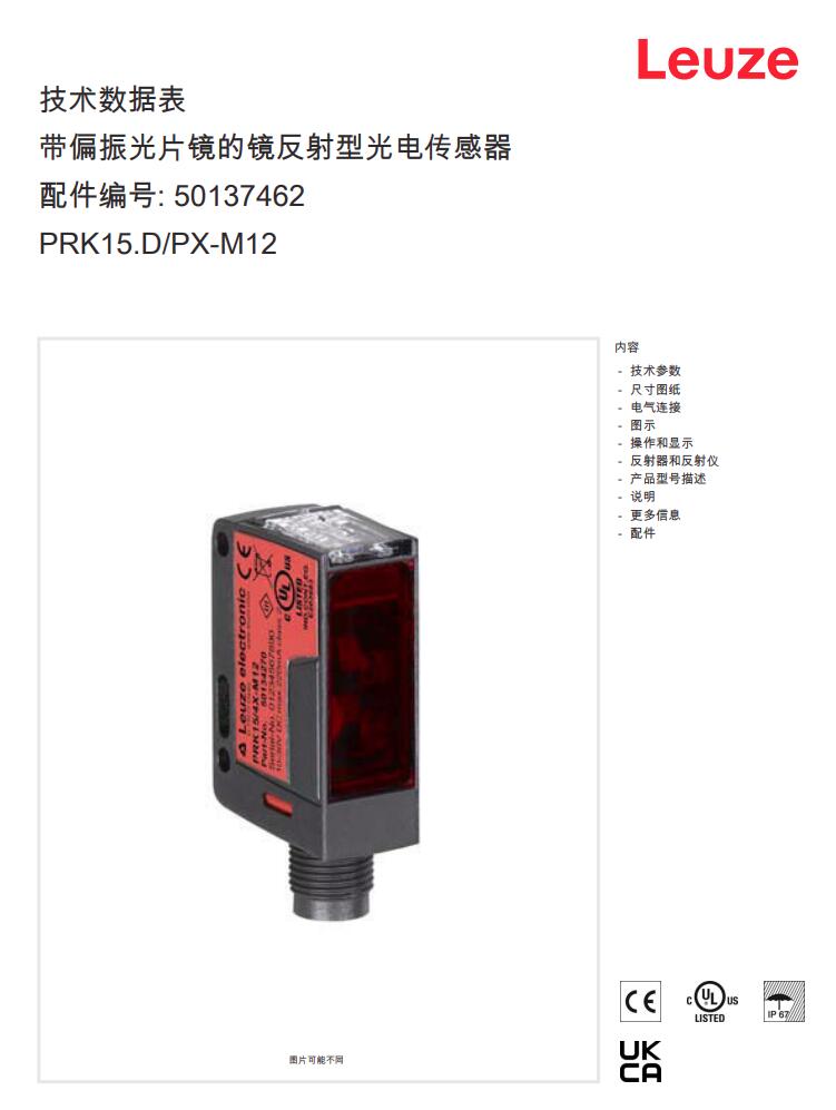 瑞士Leuze劳易测镜反射型光电传感器PRK15.D/PX-M12产品详情: