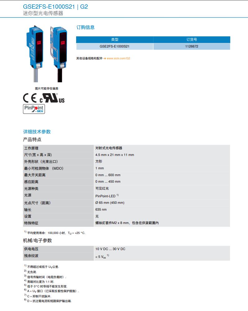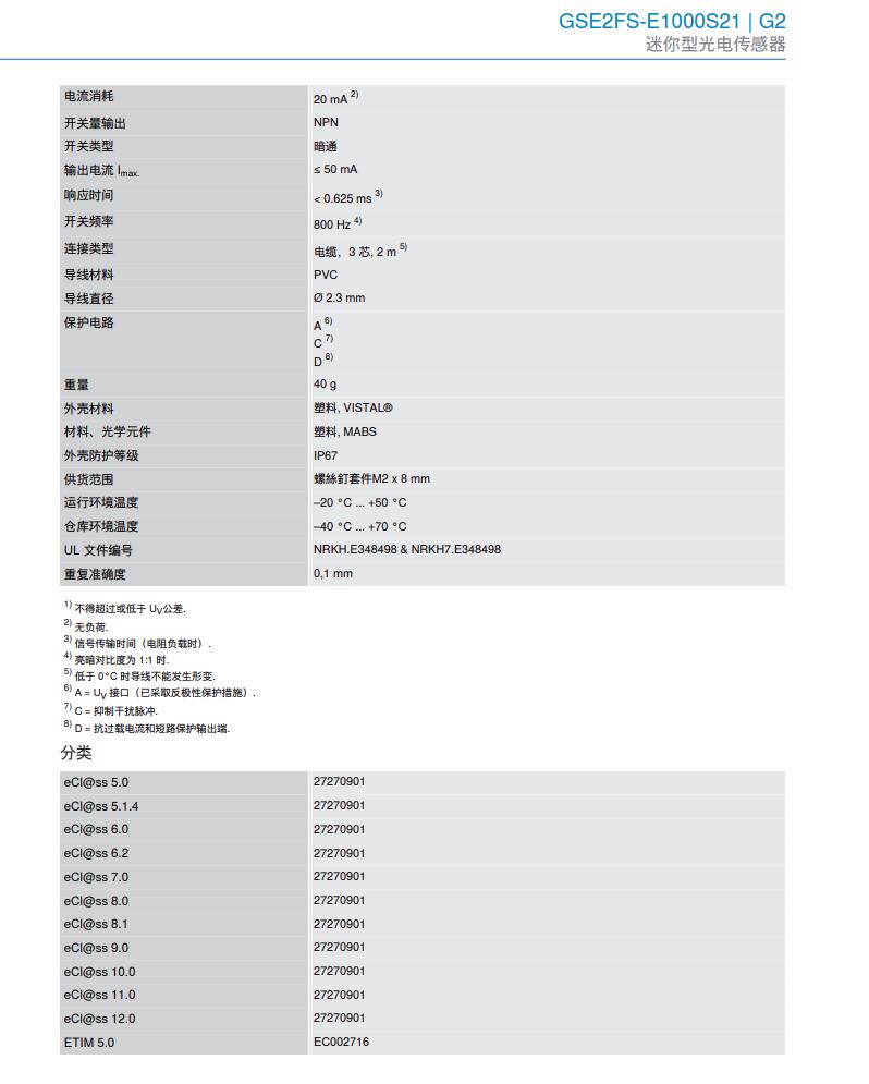 德国SICK西克迷你型光电传感器G2系列 GSE2FS-E1000S21产品详情: