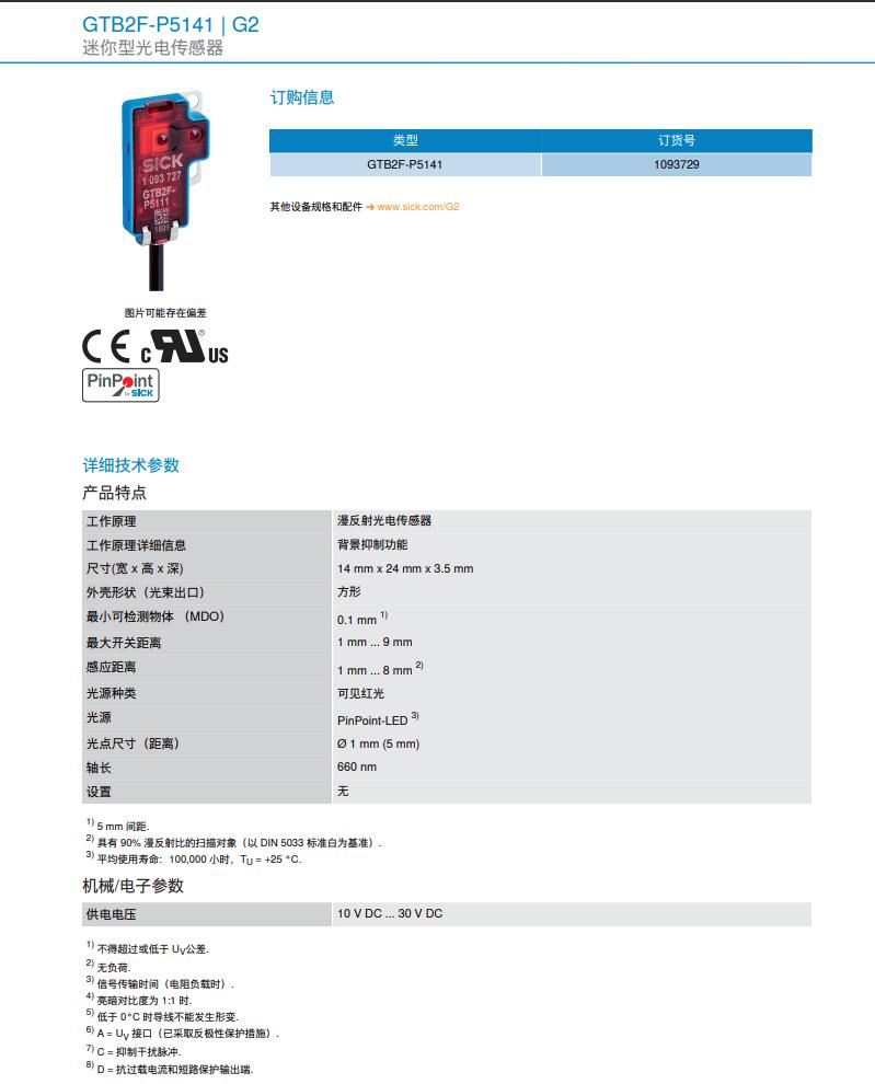 德国SICK西克迷你型光电传感器G2系列GTB2F-P5141产品详情: