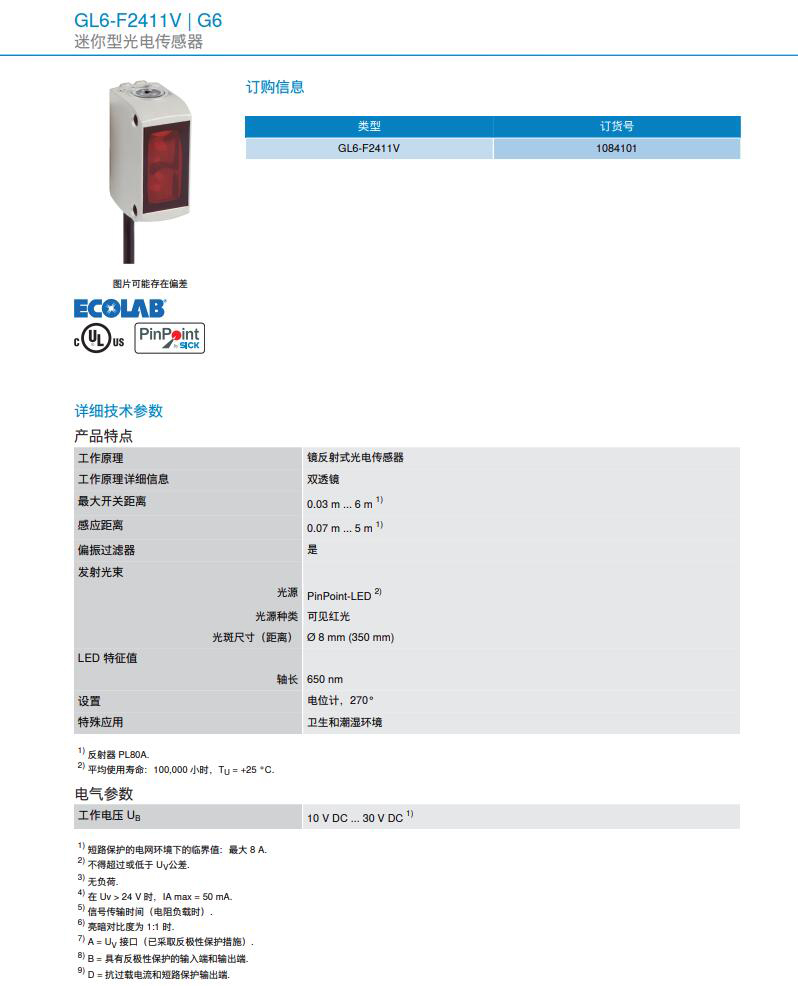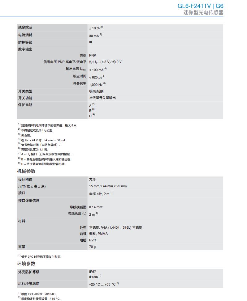 德国SICK西克迷你型光电传感器G6系列GL6-F2411V产品详情: