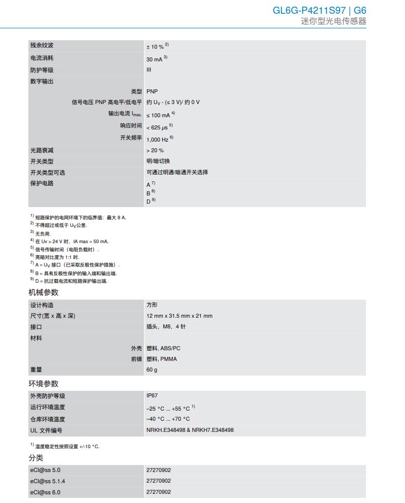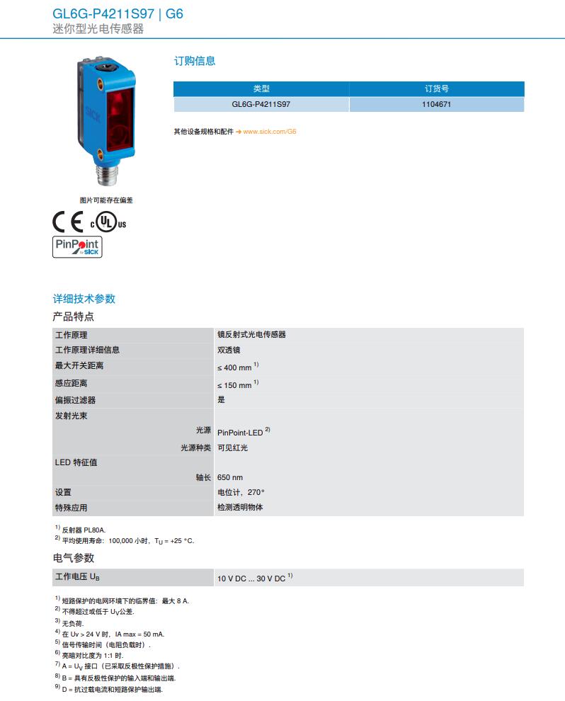 德国SICK西克迷你型光电传感器G6系列GL6G-P4211S97产品详情: