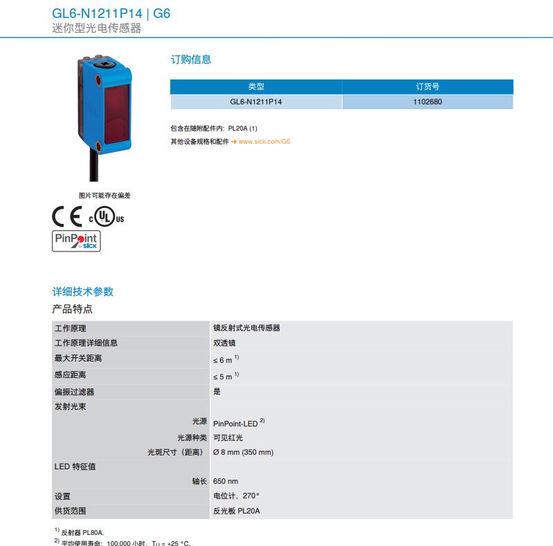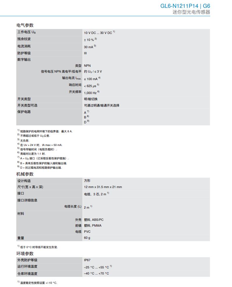 德国SICK西克迷你型光电传感器G6系列GL6-N1211P14产品详情: