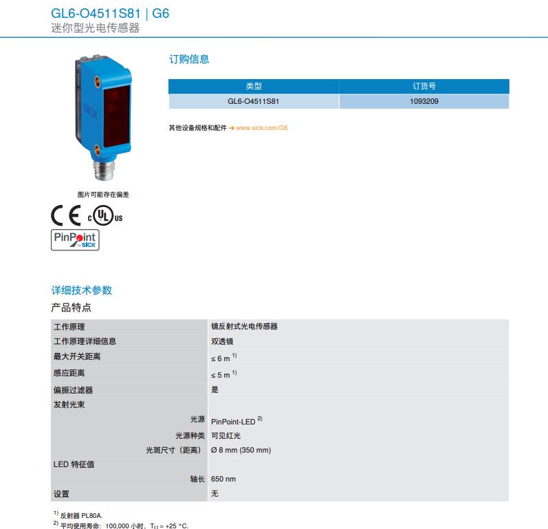 德国SICK西克迷你型光电传感器G6系列GL6-O4511S81产品详情: