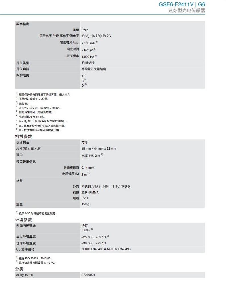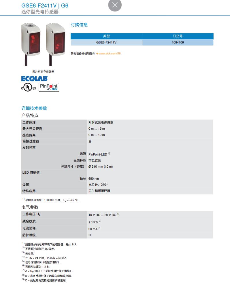德国SICK西克迷你型光电传感器G6系列GSE6-F2411V产品详情: