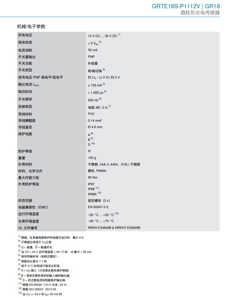 德国SICK西克圆柱形光电传感器GR18系列GRTE18S-P1112V产品详情: