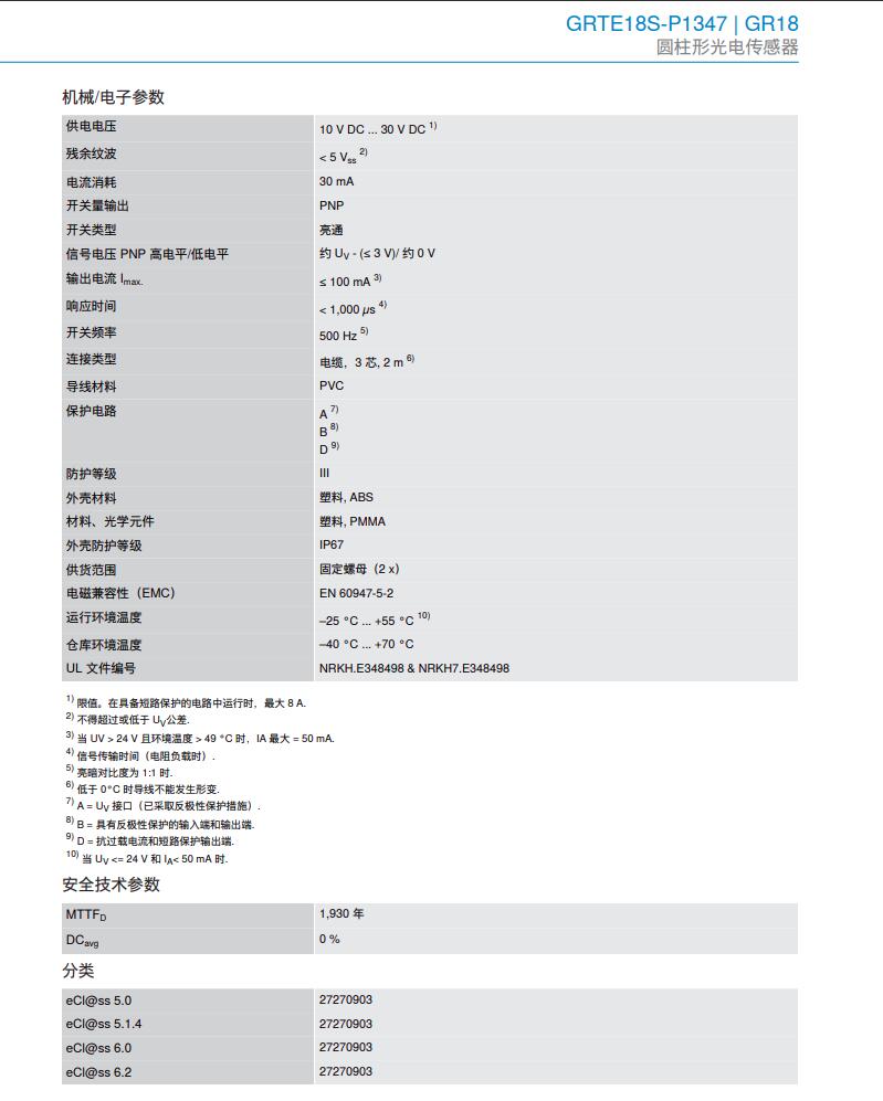 德国SICK西克圆柱形光电传感器GR18系列GRTE18S-P1347产品详情: