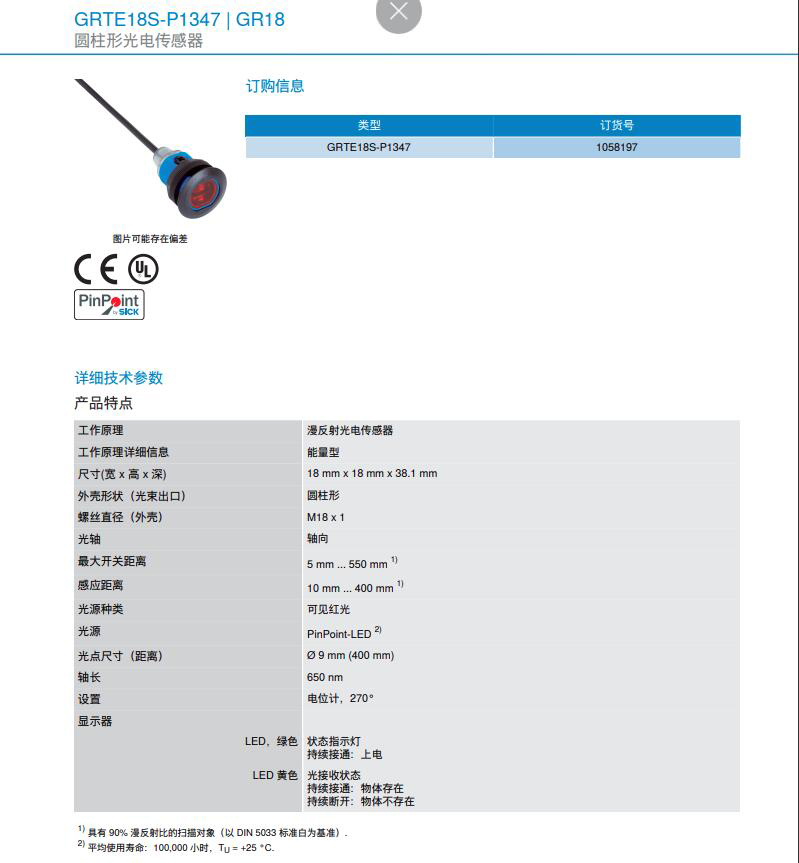 英国上市公司365进口分销德国SICK西克圆柱形光电传感器GR18系列等全系列产品,保证原装正品,可提供产品型号图片、参数、技术资料和详细信息。