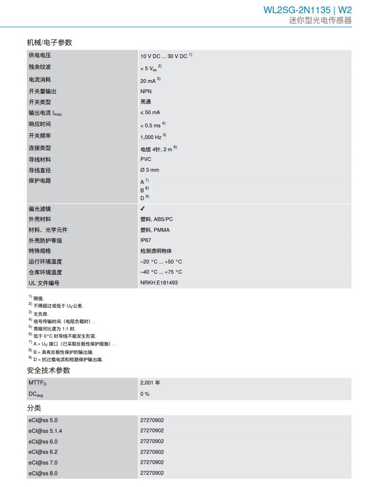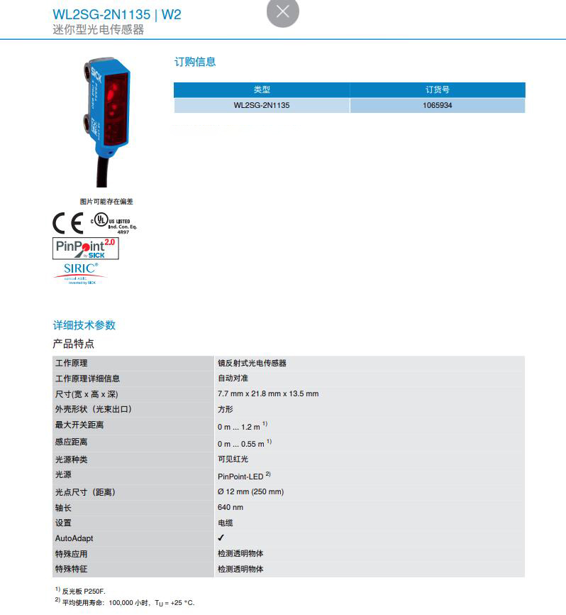 德国SICK西克迷你型光电传感器W2系列WL2SG-2N1135产品详情: