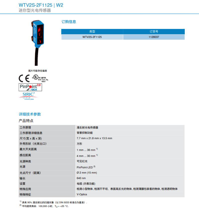 德国SICK西克迷你型光电传感器W2系列WTV2S-2F1125产品详情: