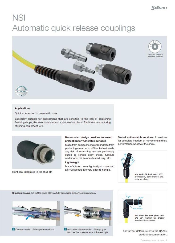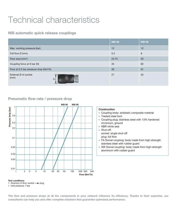 NSI 压缩空气连接器符合 ISO 6150 C 连接插头系列标准和 ISO 4414 断开齿隙预防标准。