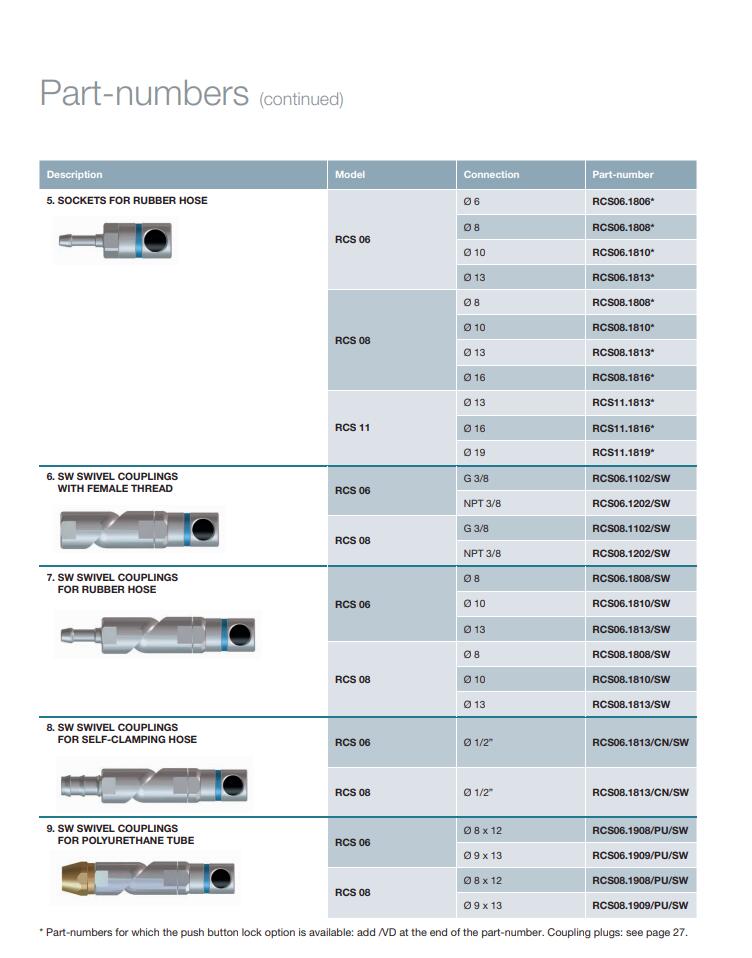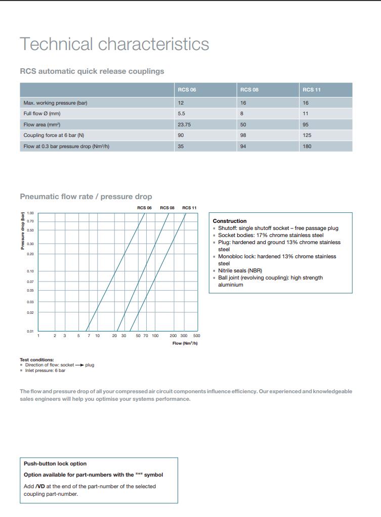 RCS 压缩空气连接器符合关于连接插头的 ISO 6150 C 标准和断开时防软管反抽的 ISO 4414 标准。
