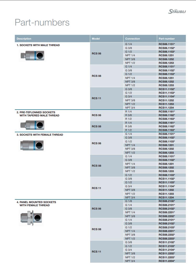 瑞士Staubil史陶比尔快速接头RCS安全系列RCS06.1151产品详情: