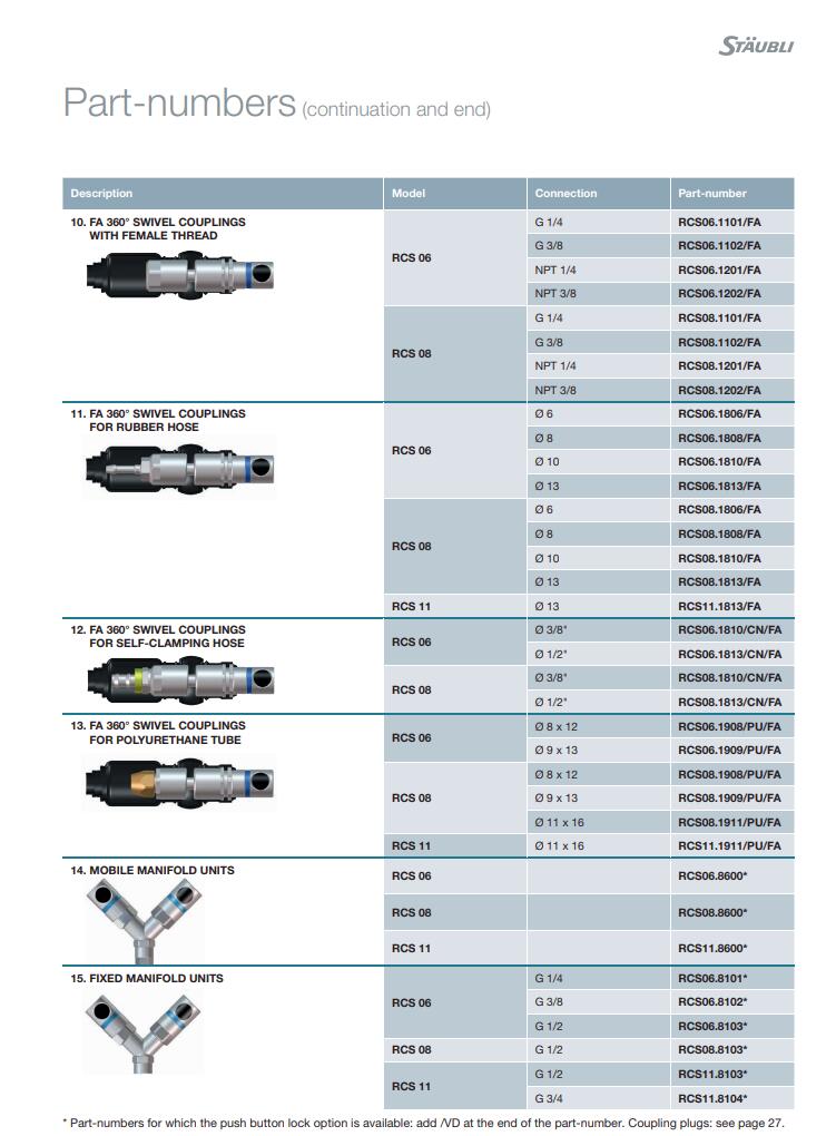 瑞士Staubil史陶比尔快速接头RCS安全系列