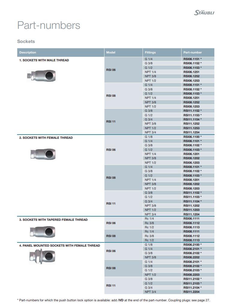 瑞士Staubil史陶比尔快速接头RSI系列RSI06.1111产品详情:
