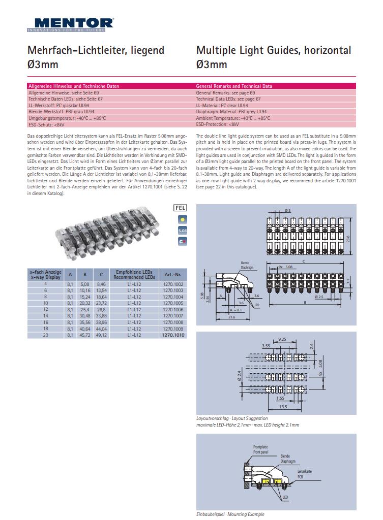 MENTOR系列高品质标准光导提供了广泛的解决方案。它包括前面板安装解决方案,以及垂直或水平电路板安装版本,单个和多个光导,条形图显示,不同的头部形状,各种尺寸,包括微型版本和灵活的光导系统。