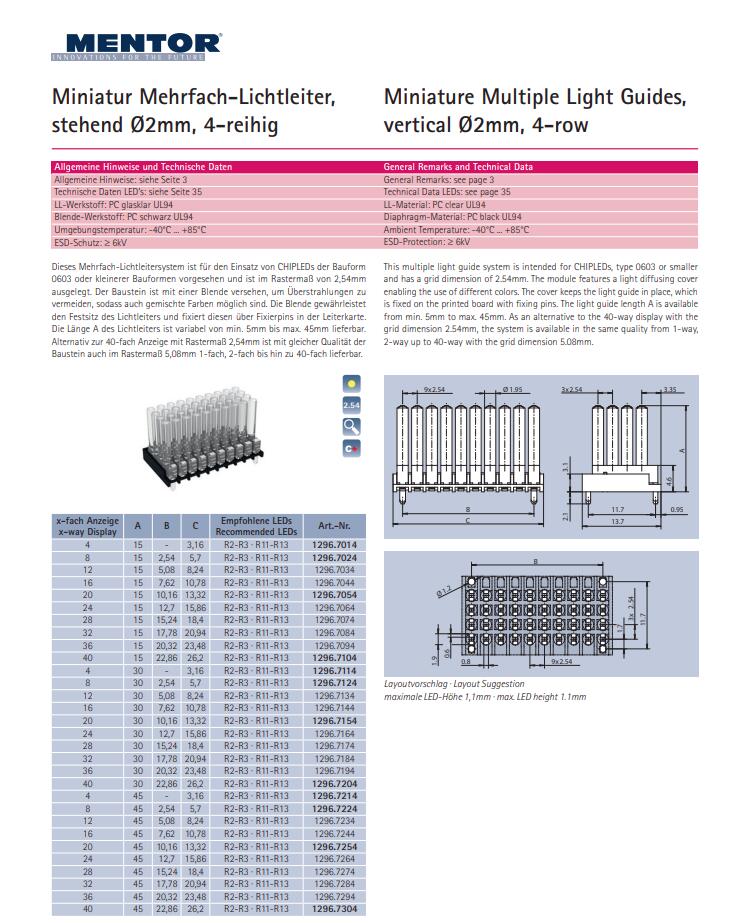 MENTOR系列高品质标准光导提供了广泛的解决方案。它包括前面板安装解决方案,以及垂直或水平电路板安装版本,单个和多个光导,条形图显示,不同的头部形状,各种尺寸,包括微型版本和灵活的光导系统。