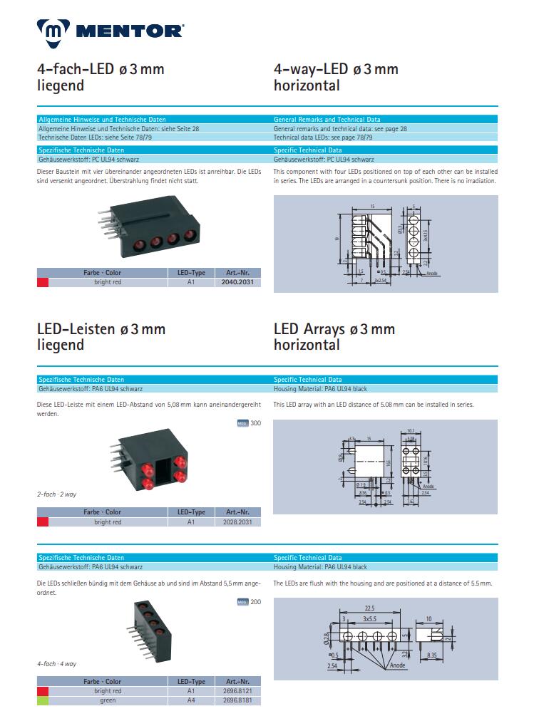 德国MENTOR 光电电子元件 多LED显示系列2028.2031产品详情:
