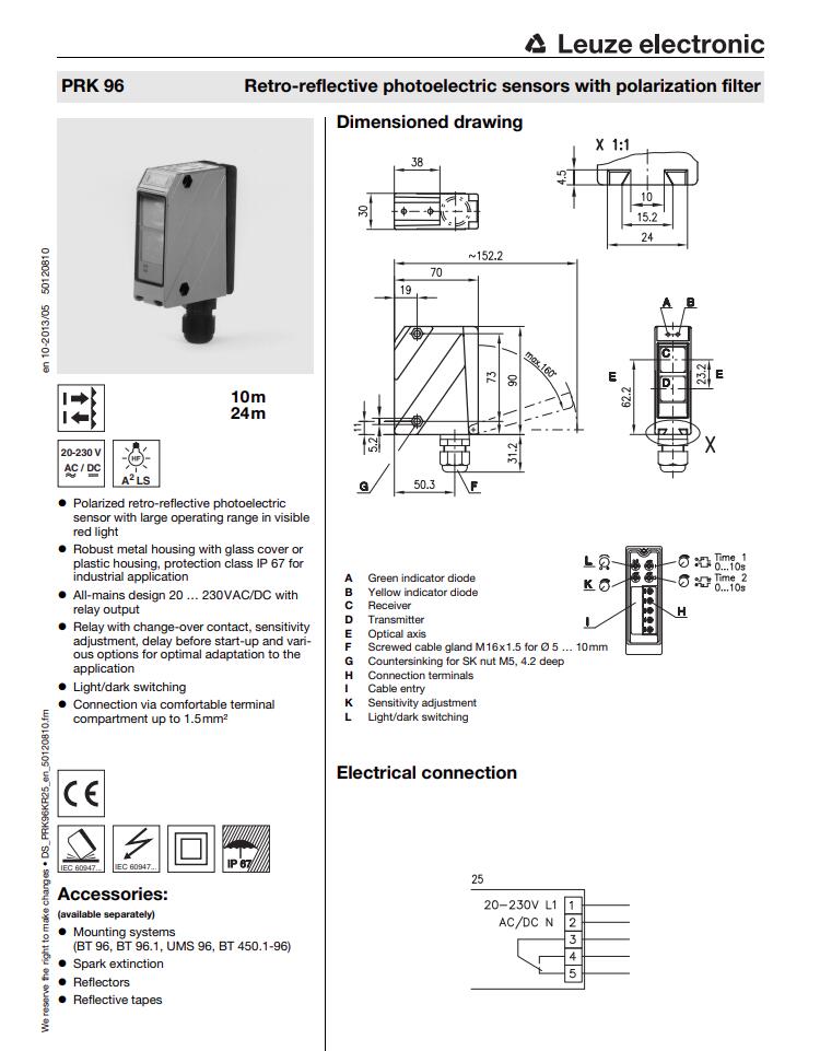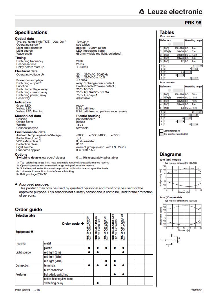 瑞士Leuze劳易测 镜反射型光电传感器PRK 96K/R-1420-25产品详情: