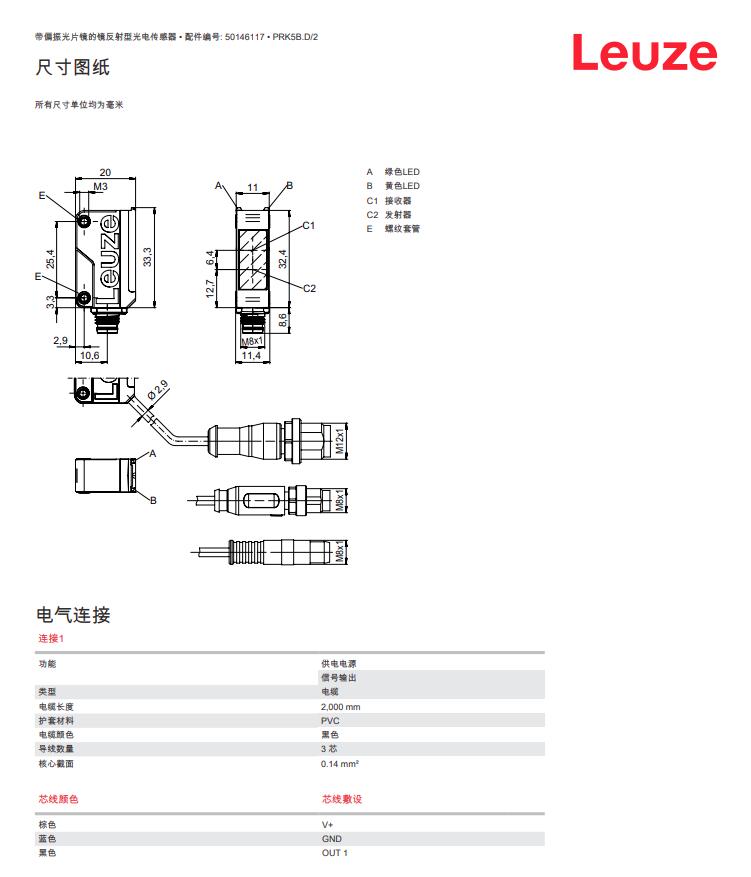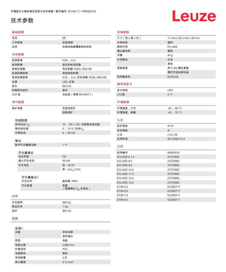 瑞士Leuze劳易测镜反射型光电传感器PRK5B.D/2产品详情: