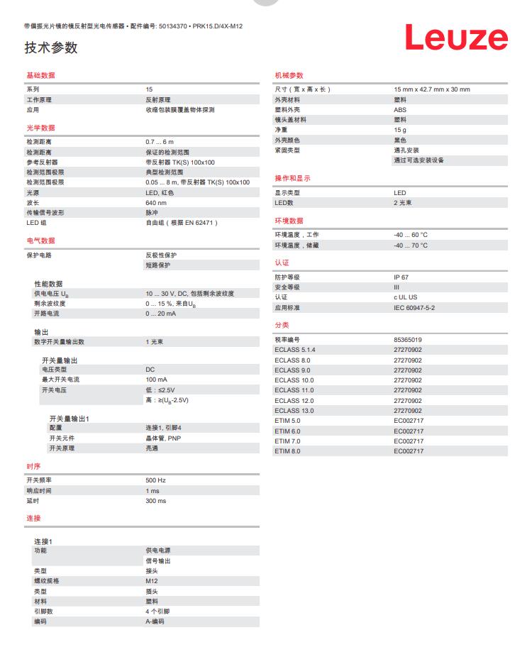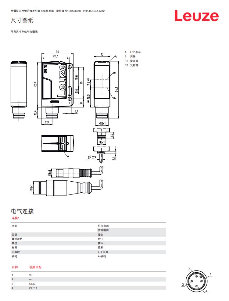 瑞士 Leuze劳易测 镜反射型光电传感器 PRK15.D/4X-M12产品详情: