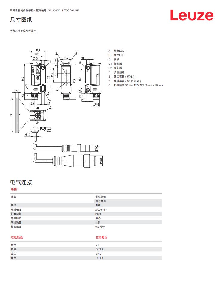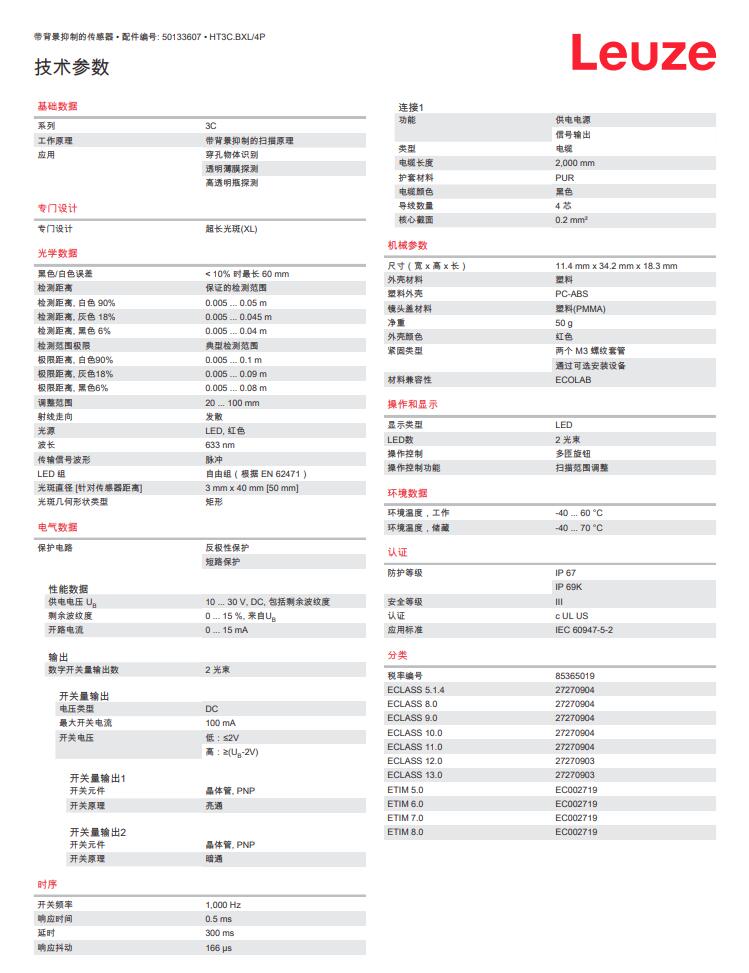 瑞士Leuze劳易测 漫反射光电传感器HT3C.BXL/4P产品详情: