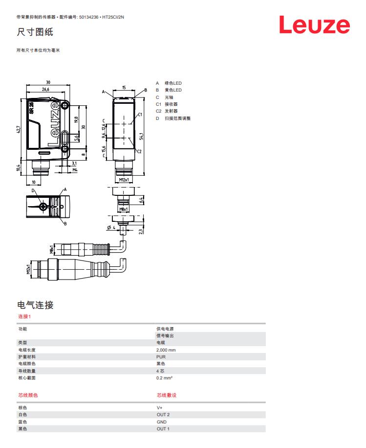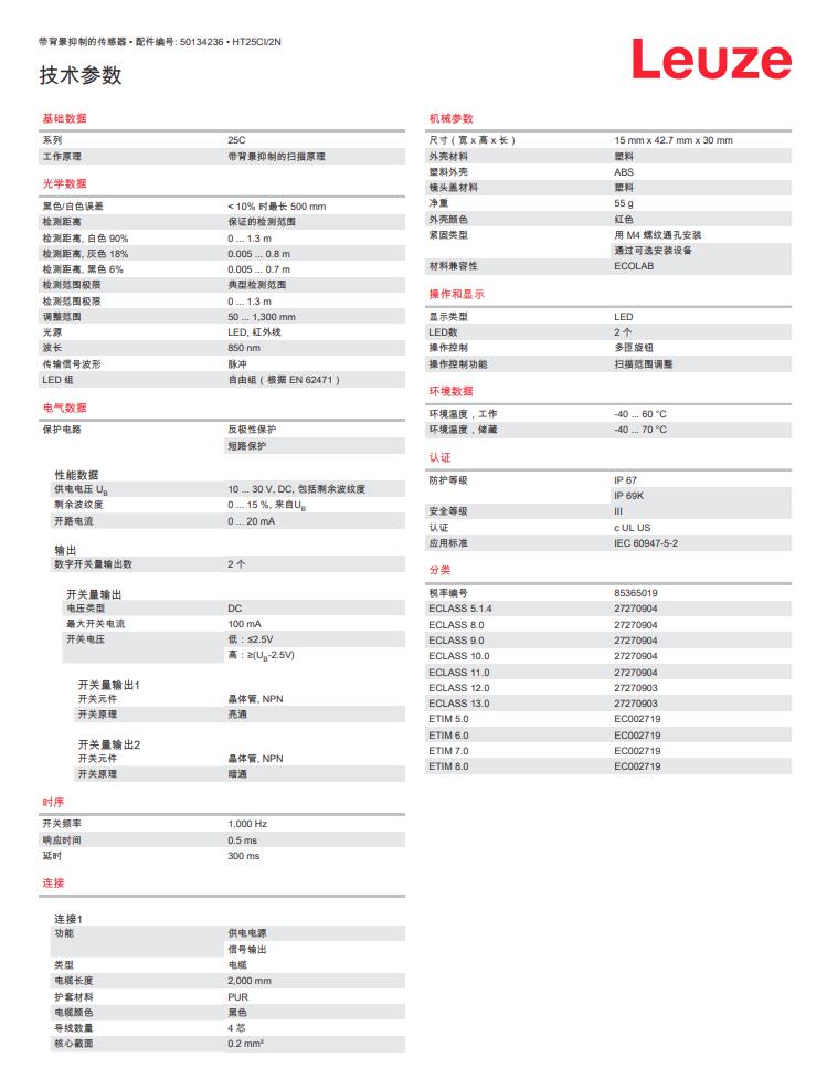 瑞士 Leuze劳易测 漫反射光电传感器HT25CI/2N产品详情: