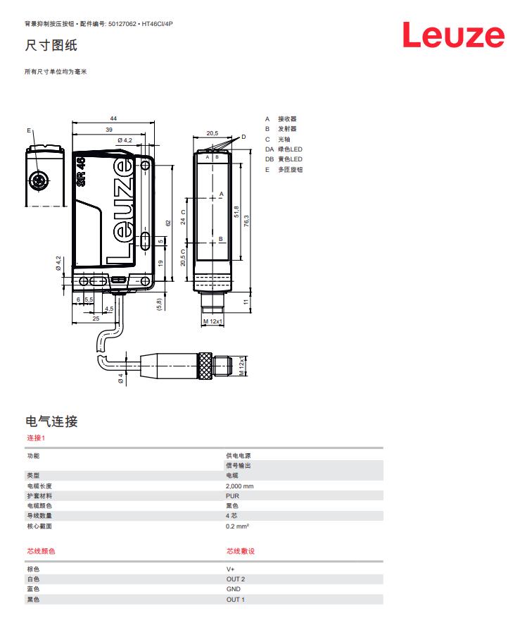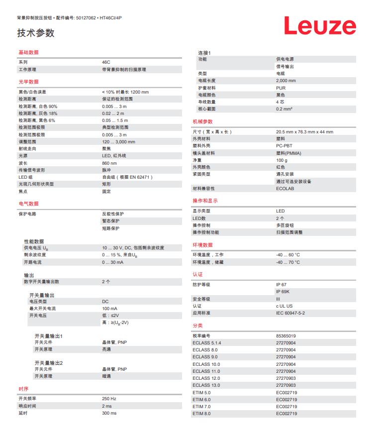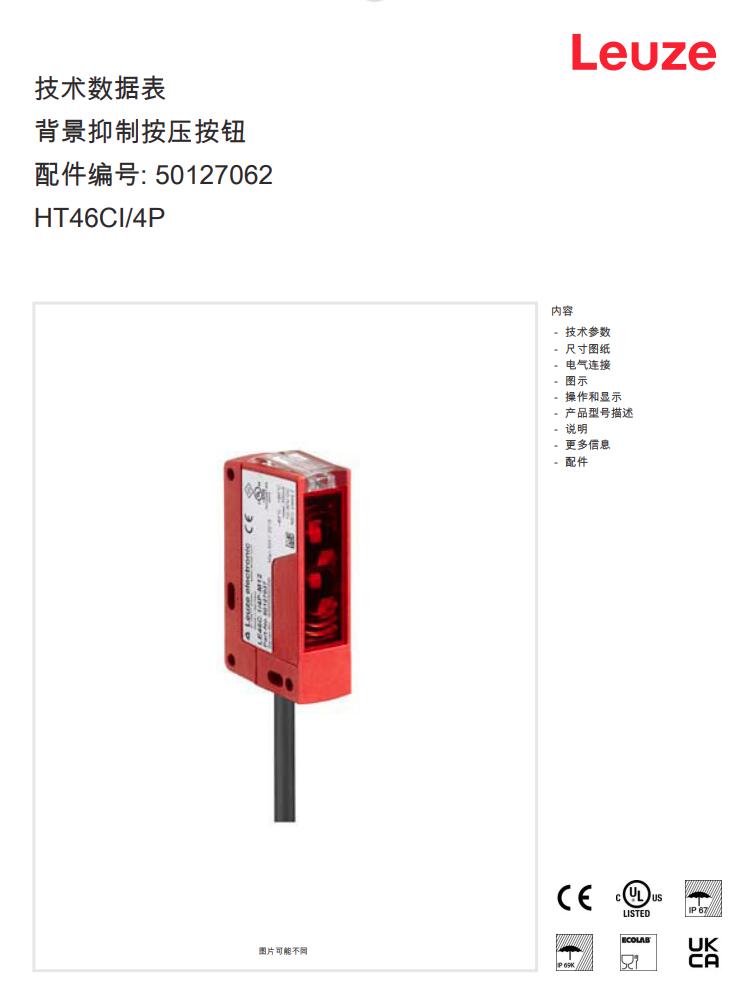 瑞士 Leuze劳易测 漫反射光电传感器HT46CI/4P产品详情: