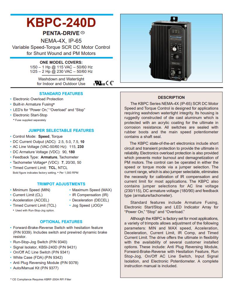 美国KB直流驱动器NEMA 4X/IP65系列