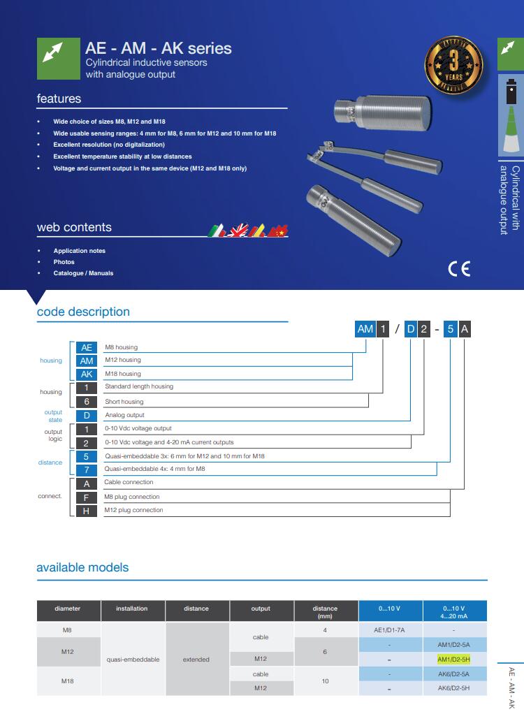 电感式传感器圆柱形传感器接近开关AM系列