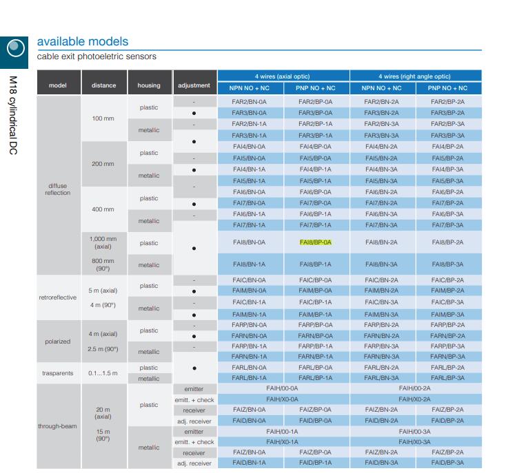 意大利MD墨迪 光电传感器 FA系列产品详情: