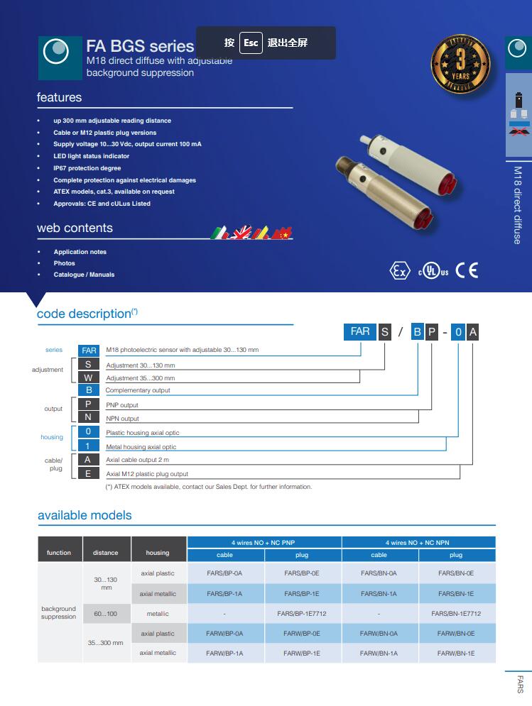 意大利 MD墨迪 光电传感器 FA系列产品详情: