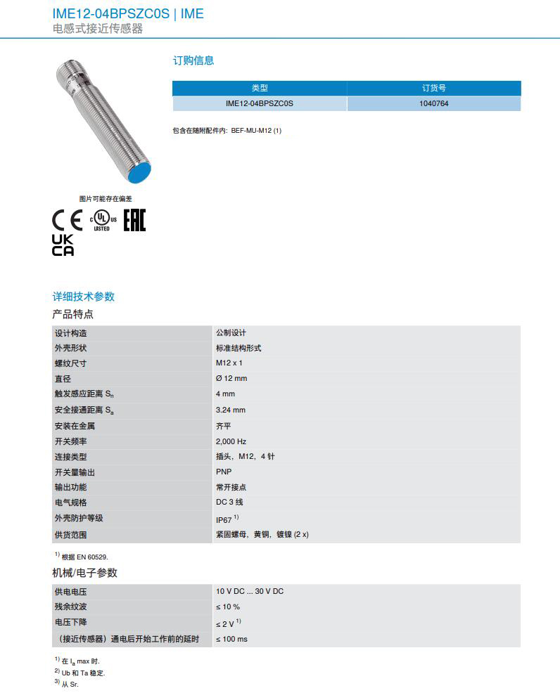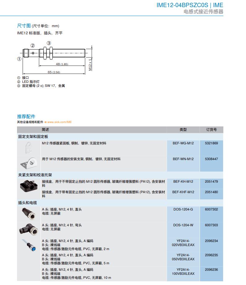 IME12-02BPSZC0K 订货号: 1040731 IME12-04BNOZW5S 订货号: 1044829 IME12-06BPSZC0K 订货号: 1071218