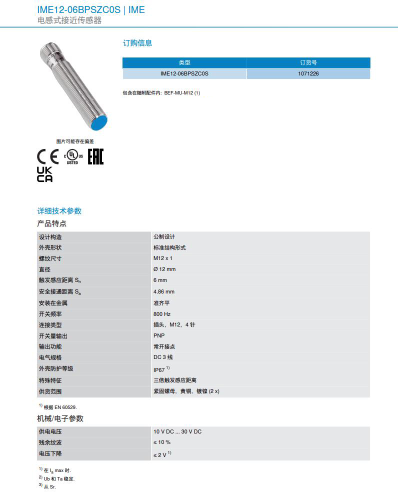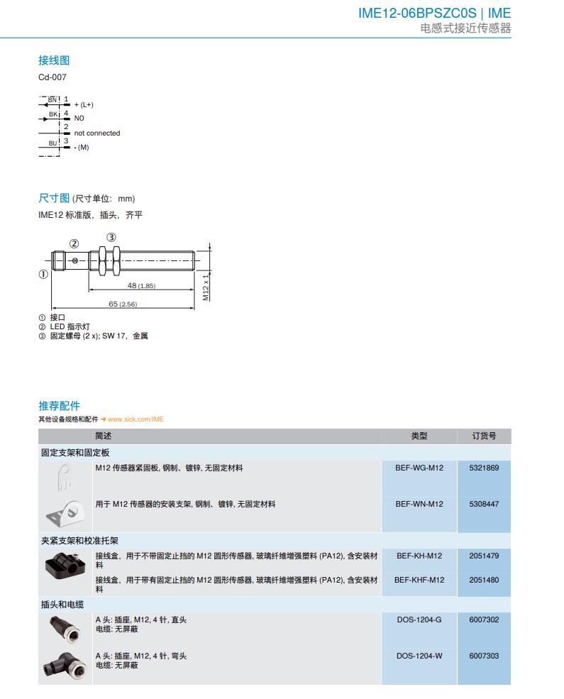 SICK西克电感式接近传感器IME12系列IME12-06BPSZC0S产品详情: