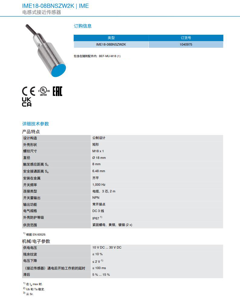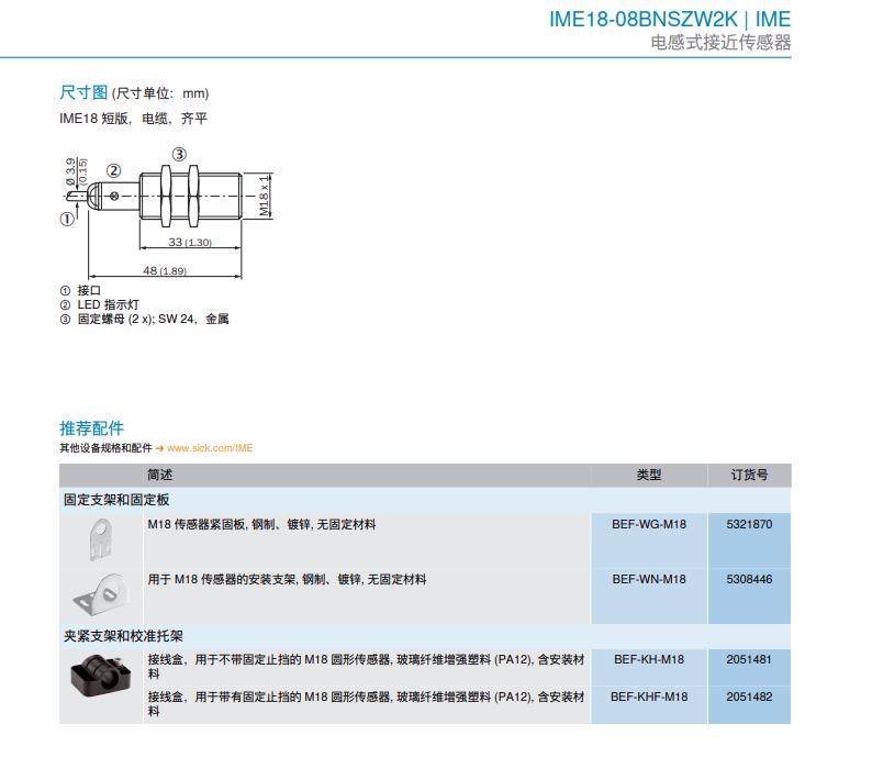 德国SICK西克电感式接近传感器 IME18系列IME18-08NNSZW2K产品详情: