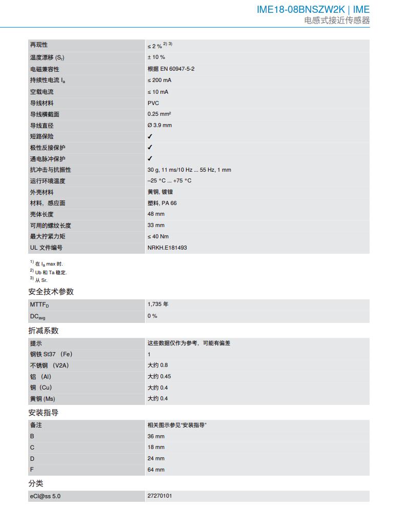 精密,高可用性和长使用寿命是感应式传感器十分重要的指标。感应式传感器 IME 在窄小的空间应用上运用高科技。集成的专用集成电路芯片在独立的制造工艺后实现数字化调节。数据存贮于专用集成电路内确保准确的开关点以及超高的数值重复性,覆盖所有的产品批次。在外壳的内部,创新的 “热熔浇铸成型"确保非常高的抗冲击和抗振动性。对于用户来说,它实现机器内部的高定位精度以及传感器可靠稳定地工作。