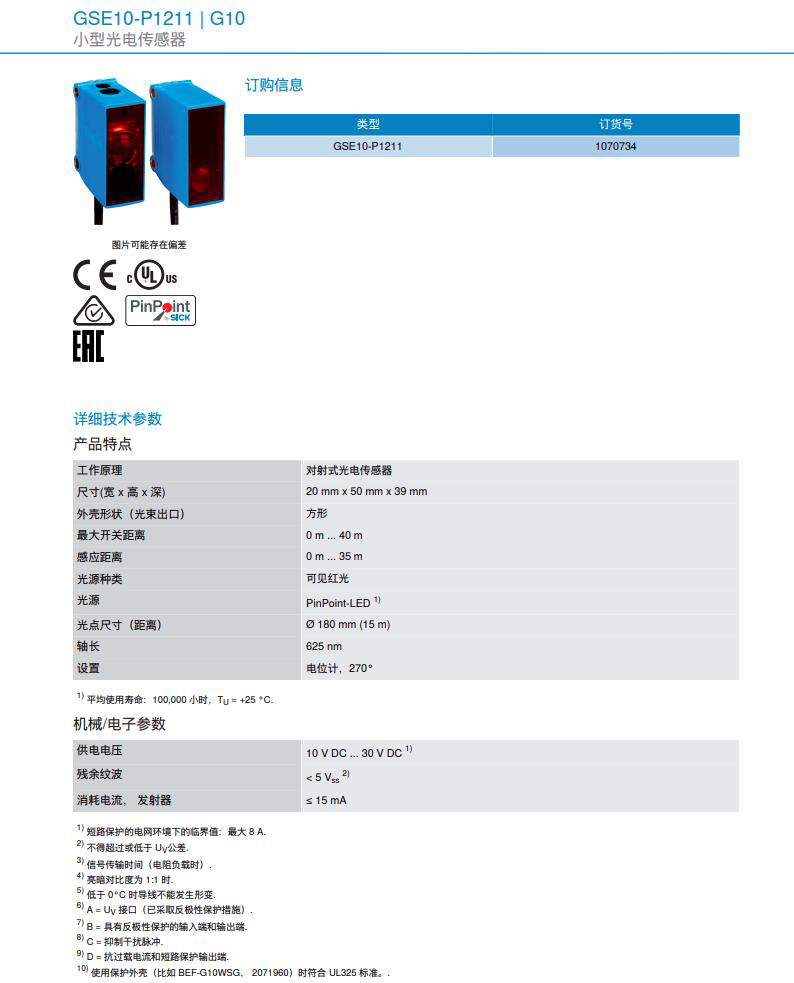 德国SICK西克对射式光电传感器GSE10-P1211产品详情: