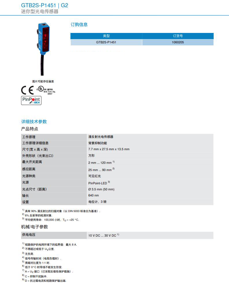 德国SICK西克漫反射光电传感器G2系列GTB2S-P1451产品详情: