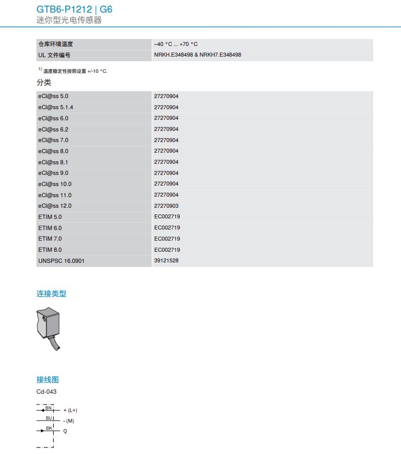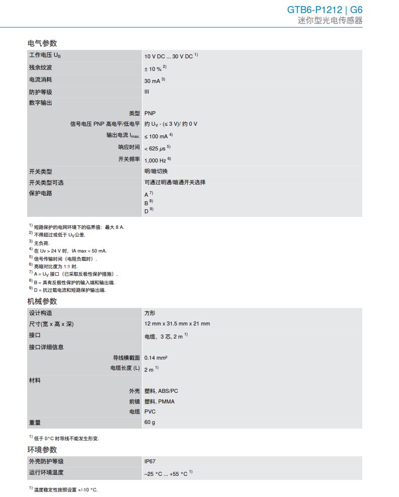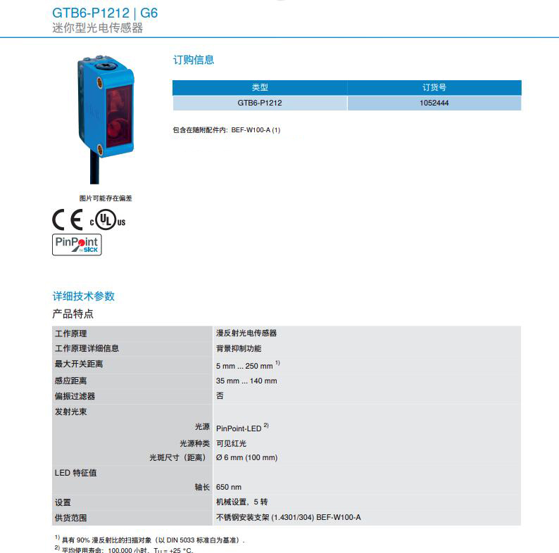 德国SICK西克漫反射光电传感器G6系列GTB6-P1212产品详情: