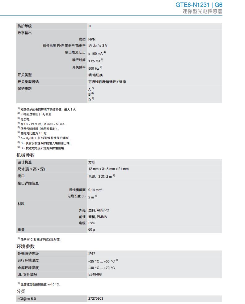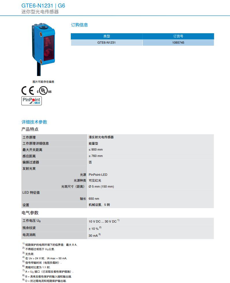 德国SICK西克漫反射光电传感器G6系列GTE6-N1231产品详情: