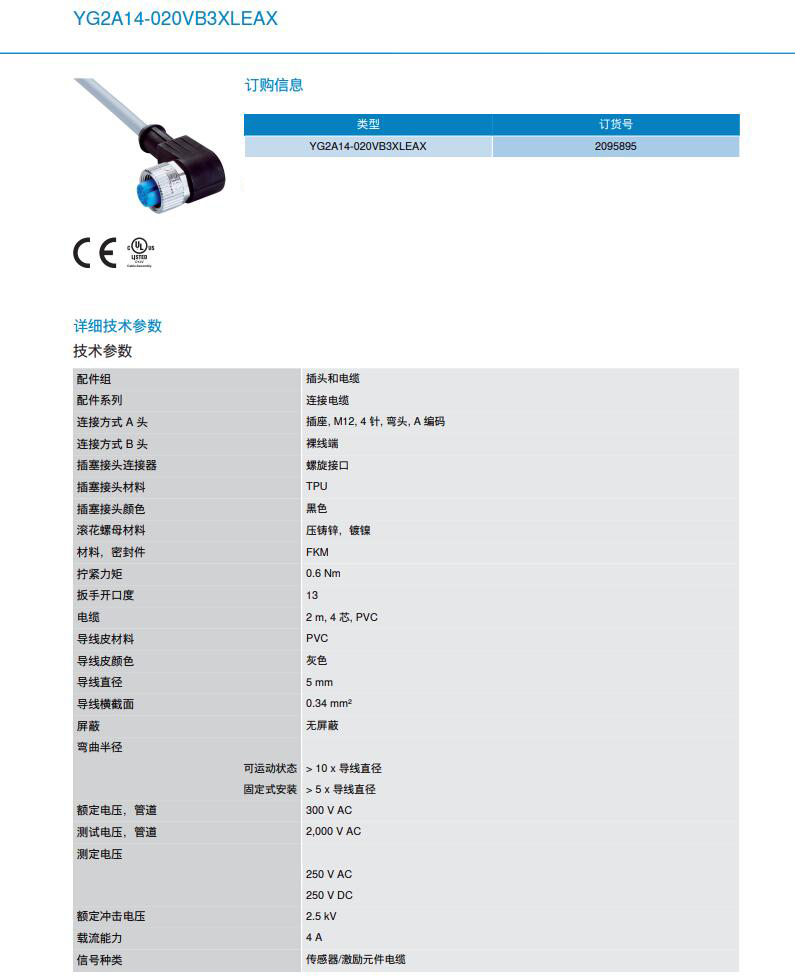 SICK西克 连接电缆 YG2A14-020VB3XLEAX产品详情: