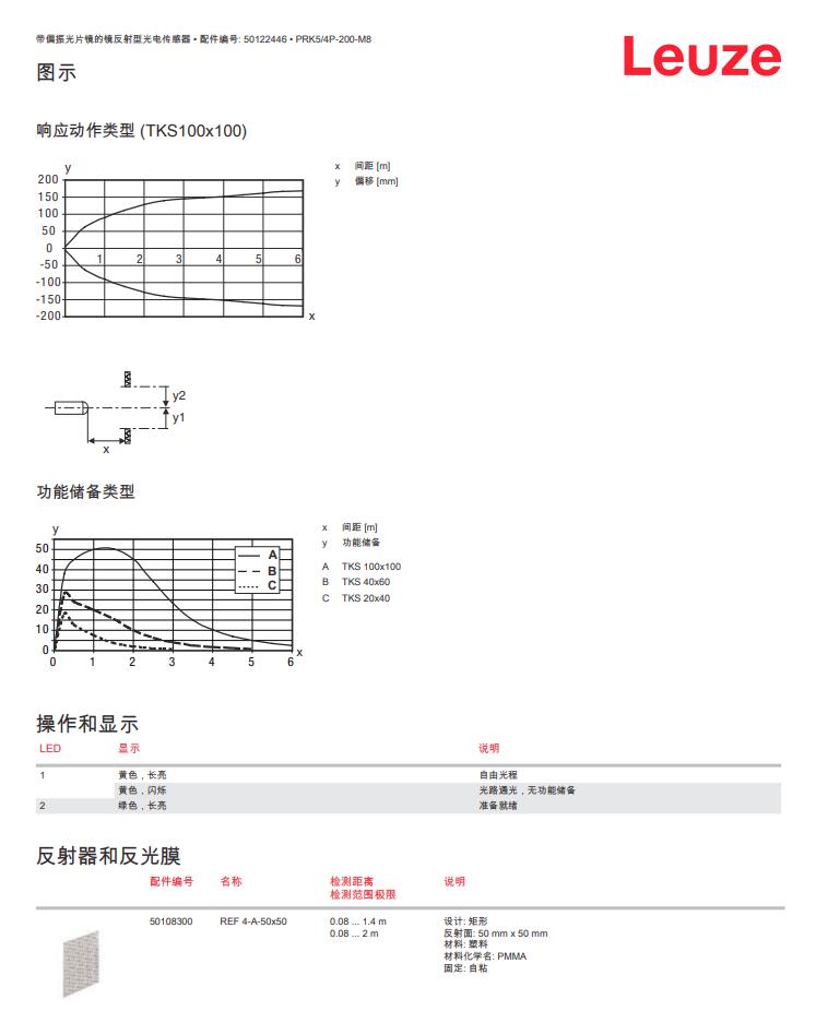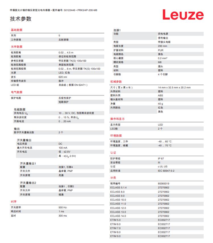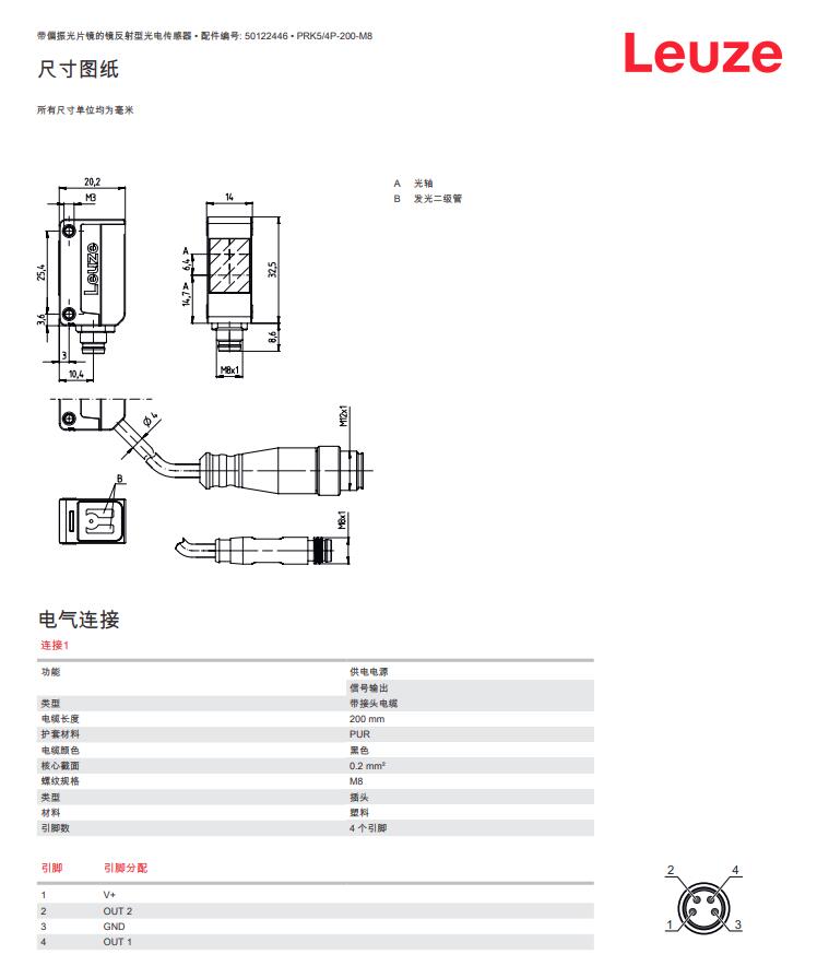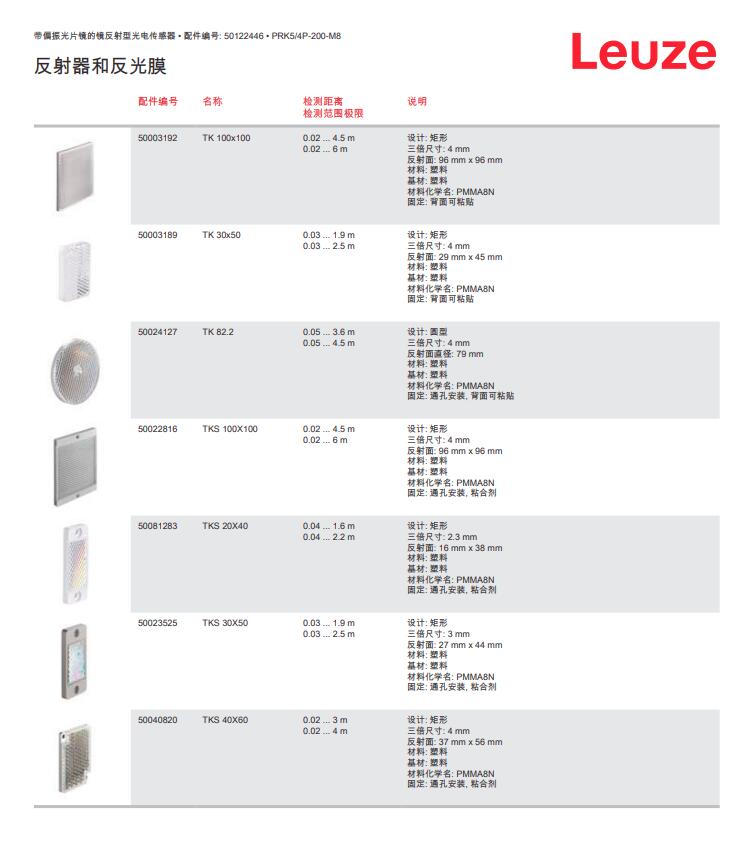 德国Leuze劳易测镜反射光电传感器PRK5/4P-200-M8产品详情: