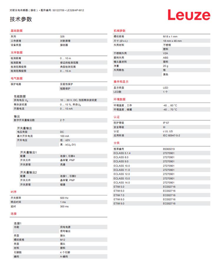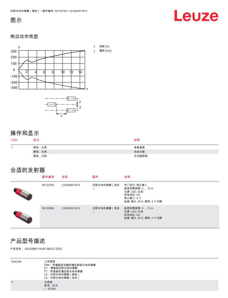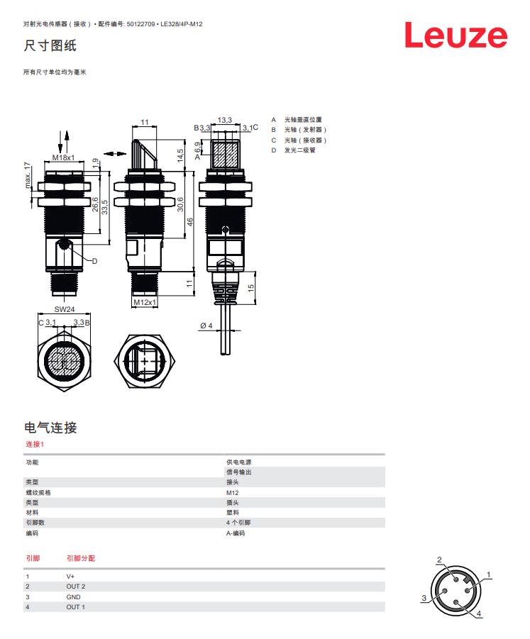 德国Leuze劳易测对射光电传感器(接收)LE328/4P-M12产品详情: